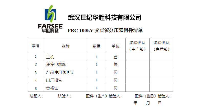 分壓器(千伏表)是高電壓試驗中必備的測量設備,它能將高電壓轉換為可用普通電壓表測量的安全低電壓,其測量準確性、直觀性及使用方便性是傳統測量高電壓采用的靜電電壓表、測量球隙等所無法比擬的。華勝FRC系列高電壓分壓器(千伏表)測量準確、使用方便安全,符合國家新頒布電力行業標準《高電壓分壓器測量系統通用技術條件 DL/T 846.1—2004》要求。