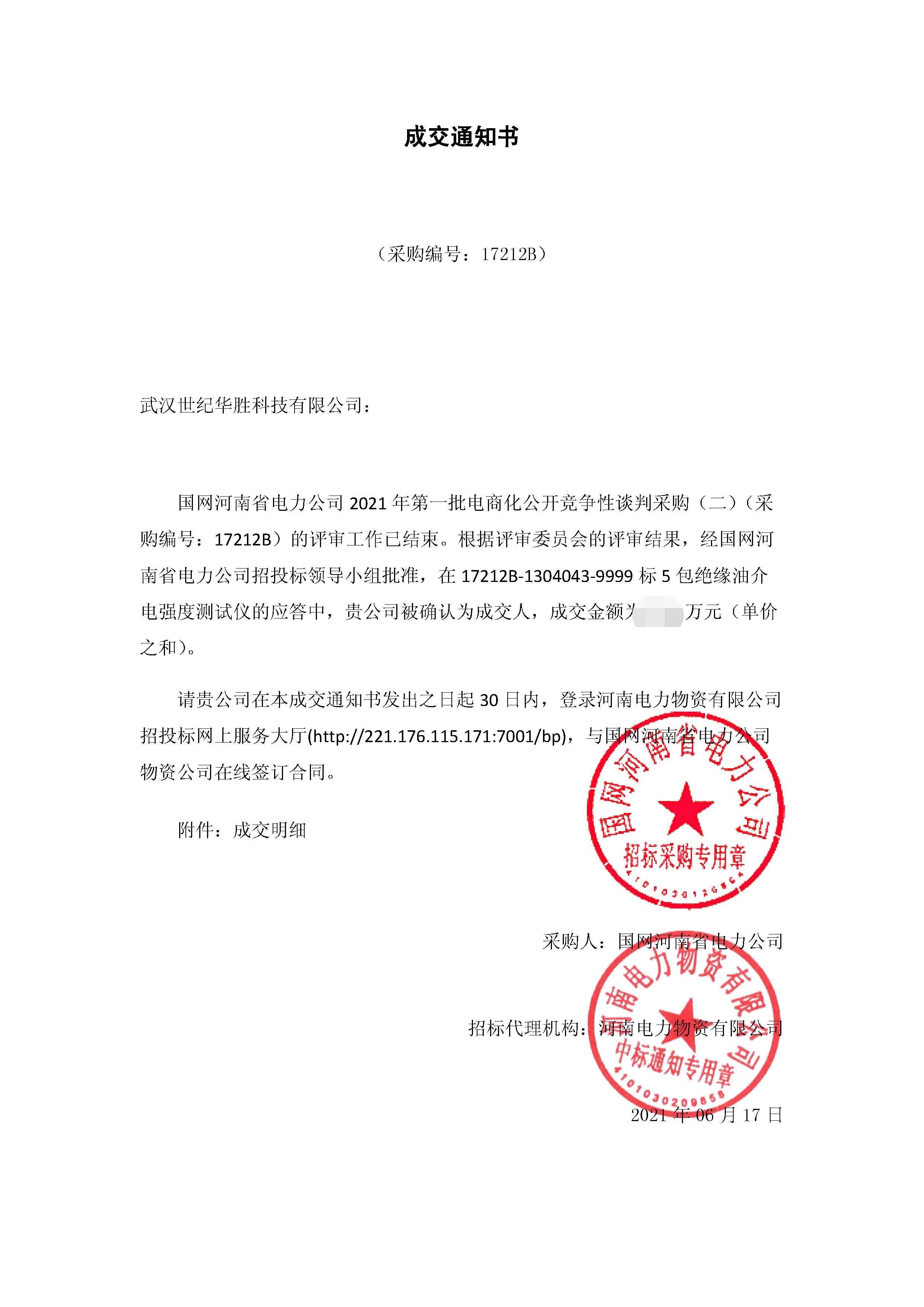 我司在國網河南省電力公司2021年第一批電商化公開競爭性談判采購(二)項目中圓滿交貨