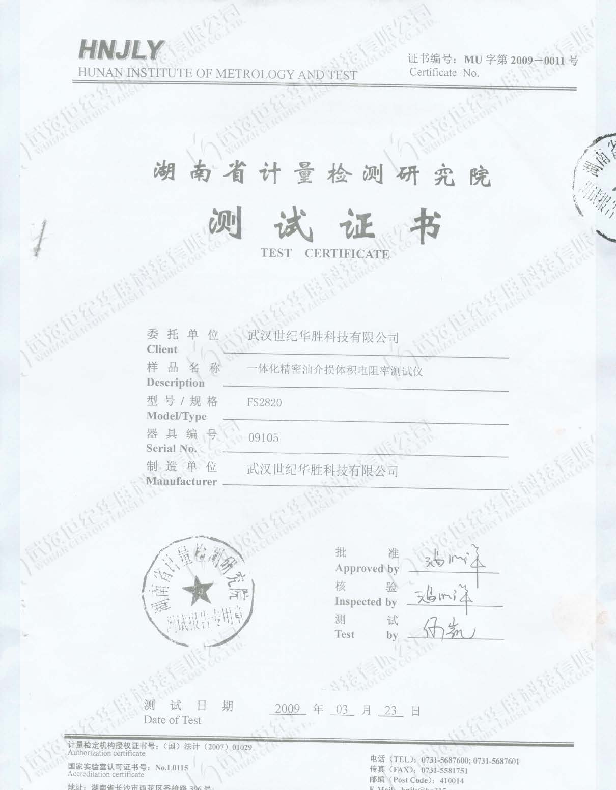 試驗標準:GB/T5654-2007 液體絕緣材料 相對電容率、介質損耗因數和直流電阻率的測量